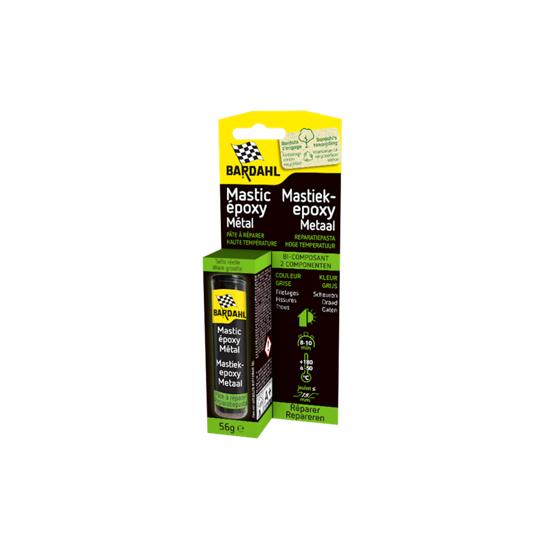 Bi-composants extrudé à base d'epoxy modelable pour réparer trous et fissures et colmater rapidement les fuites. Réparateur universel pour étal. Après polymérisation, il se ponce, taraude et se peint. Résiste à l'eau, l'essence, l'huile et la corrosion. Efficace entre -50 et +180°C.