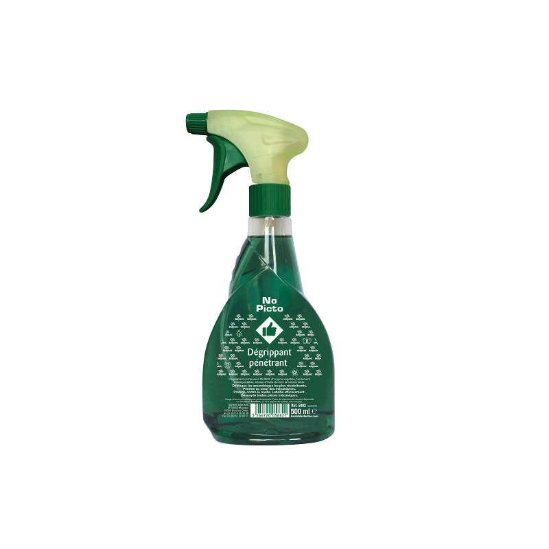 Le Dégrippant NO PICTO est un dégrippant issus de produit naturel et végétal. Il remplace les produits à base de solvants. Ce produit est à base d’huile de ricin, facilement biodégradable et est composé à 99,99% de produit d’origine végétale.