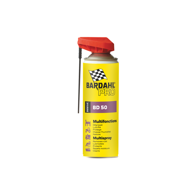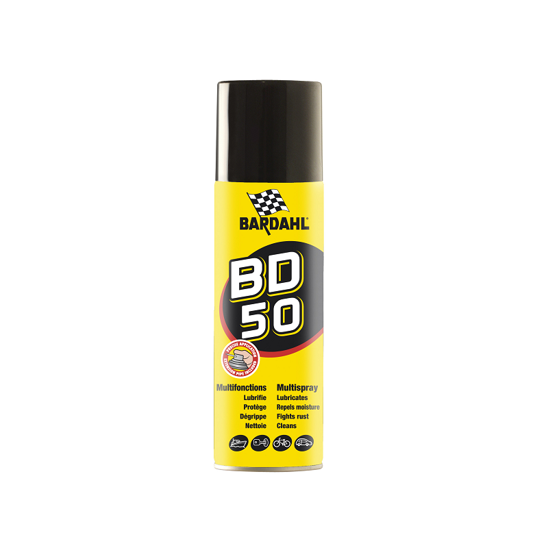 BD 50 est un dégrippant lubrifiant multifonction constitué d’une huile de base synthétique et d’un système d’inhibiteurs protégeant de la rouille et de la corrosion en chassant et en isolant l’humidité ambiante