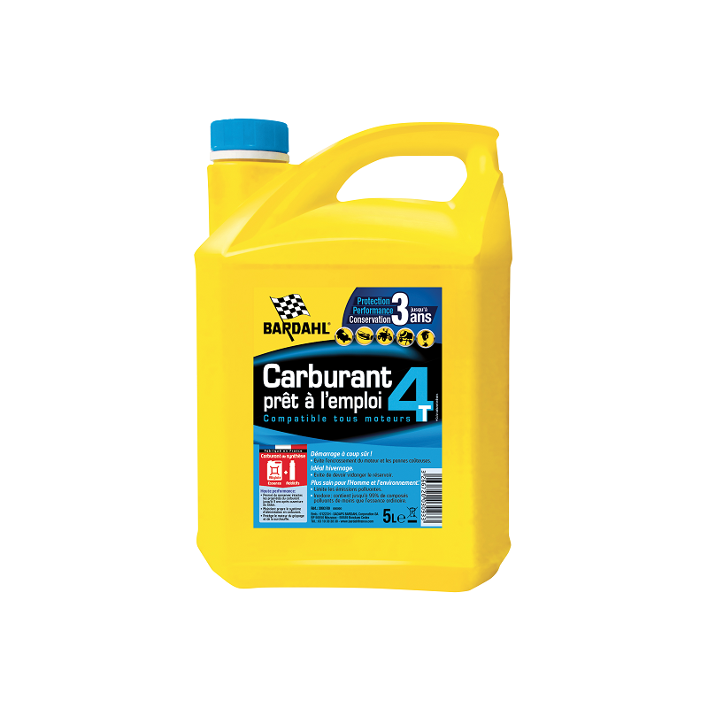 Carburant prêt à l'emploi Démarrage instantané par tous les temps même après une longue période d'inactivité Evite les entretiens à répétition Evite le risque d'erreur de dosage